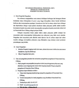 SETANDAR OPERASIONAL PROSEDUR ( SOP ) Pengelola pengaduan di pemerintah Desa Cilibang, Kecamatan Jeruklegi, Kabupaten Cilacap oleh admindesa | Sep 29, 2025 | Kabar Desa | 0 Komentar Bagikan BeritaKirim Komentar Batalkan balasanAlamat email Anda tidak akan dipublikasikan. Ruas yang wajib ditandai *Komentar *Nama * Email * Situs Web Simpan nama, email, dan situs web saya pada peramban ini untuk komentar saya berikutnya. Δ